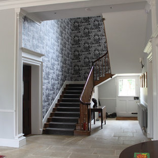 Grand Entrance Hall and Staircase. Mackintosh chair. Photo Credit: Anthony Harrison. Interior design: Alicia Zimnickas for Amberth.