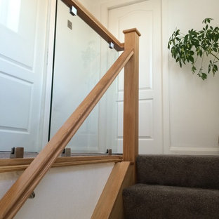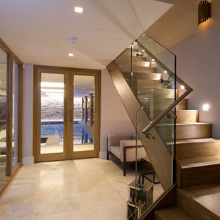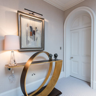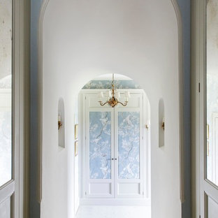 Working with & alongside the Award Winning Llama Property Developments on this fabulous Country House Renovation. The House, in a beautiful elevated position was very dated, cold and drafty. A major Renovation programme was undertaken as well as achieving Planning Permission to extend the property, demolish and move the garage, create a new sweeping driveway and to create a stunning Skyframe Swimming Pool Extension on the garden side of the House. This first phase of this fabulous project was to fully renovate the existing property as well as the two large Extensions creating a new stunning Entrance Hall and back door entrance. The stunning Vaulted Entrance Hall area with arched Millenium Windows and Doors and an elegant Helical Staircase with solid Walnut Handrail and treads. Gorgeous large format Porcelain Tiles which followed through into the open plan look & feel of the new homes interior. John Cullen floor lighting and metal Lutron face plates and switches. Gorgeous Farrow and Ball colour scheme throughout the whole house. This beautiful elegant Entrance Hall is now ready for a stunning Lighting sculpture to take centre stage in the Entrance Hallway as well as elegant furniture. More progress images to come of this wonderful homes transformation coming soon. Images by Andy Marshall