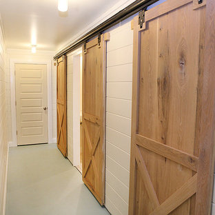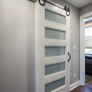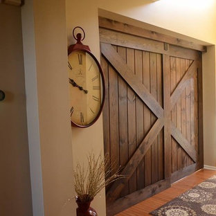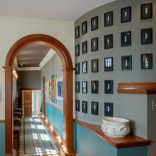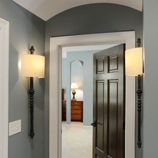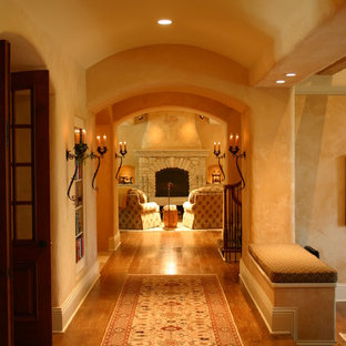 This space leads into the hearth room, seen at the end of the hallway. The hearth room opens up to the kitchen and dining room.