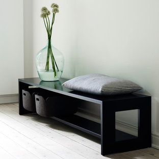 Vi leverede møblerne, håndlavede materialer og håndværk til en smagfuld og afbalanceret løsning af hele hjemmet. Kunden var særligt glad for dette special-designede entre-møbel.