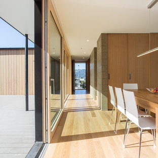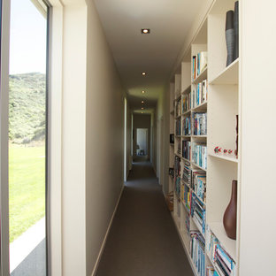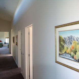 Modern entrance with a combination bamboo flooring and carpet leading to the kitchen, formal lounge and bedrooms in a New Home built in Dunedin by Mark Hastie, Precision Builders Otago