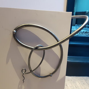 A beautiful, free flowing, hand forged stair handrail. Forged in mild steel with a brushed and waxed finish to show the natural colours of the steel.