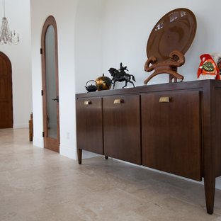 Curved arches and doorways lead off foyer to living and bedroom quarters.