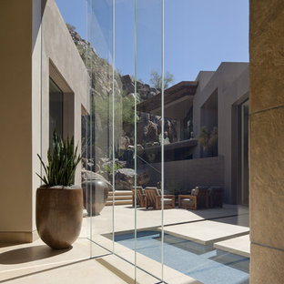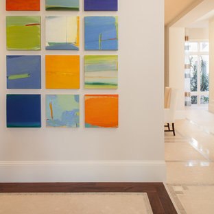 Colorful original art provided the unexpected in the serene neutral background. Details of the limestone, onyx and walnut floor are scattered strategically throughout the residence.