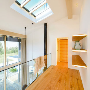 Die Galerie im Obergeschoss wurde hell und freundlich gestaltet. Durch die Dachfenster kommt viel Licht ins Haus.