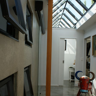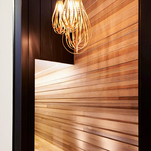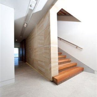 NZ Matai Treads with Imported Acrylic Risers and Concealed Steel Stringers.
