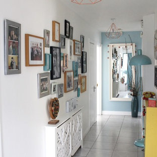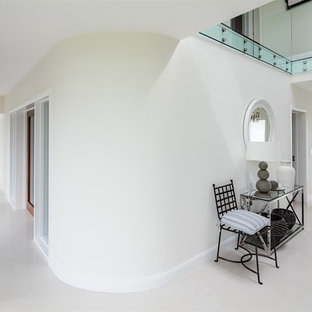 The hallway was divided with classic wooden arch mouldings. Silky rugs define the pathways and add softness to the scheme. The feature fist door handle was original to the house.