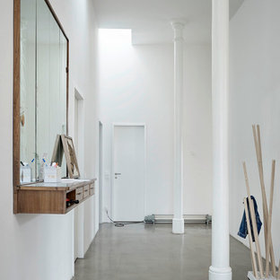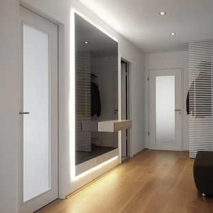 Für den Eingangsbereich dieser Wohnung wünschte sich der Bauherr im Eingangsbereich einen Spiegel. Benötigte aber gleichzeitig eine Konsole, um Schlüssel, Telefon, usw. abzulegen. Wir haben beides kombiniert und ein Möbel geschaffen, welches wir in ähnlicher Weise seitdem mehrmals gefertigt haben.