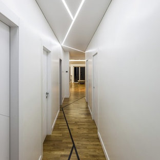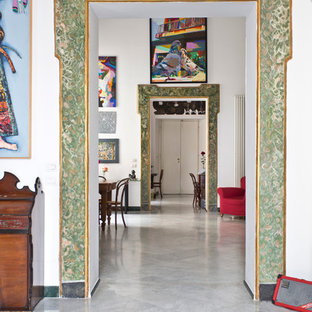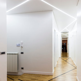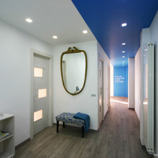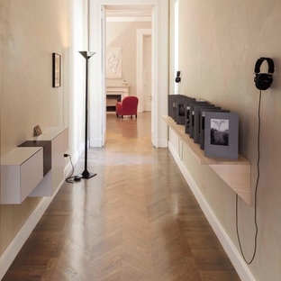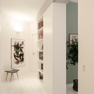 Le pannellature sono in larice sbiancato, come le scale e il parapetto del soppalco sul fondo.