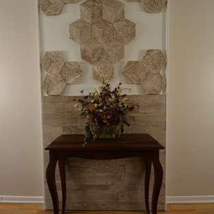 From the front entrance, we can see the fireplace was removed between the living room and dining rooms, creating greater sight lines and allowing for more traditional archways between rooms.