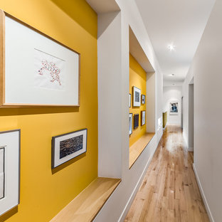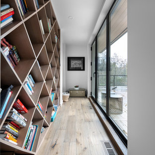 The desire to disguise the mechanical room lead to a custom designed shelf which acts as the entrance to this compact space. It's a stunning feature and is the first thing one see's when entering this room.