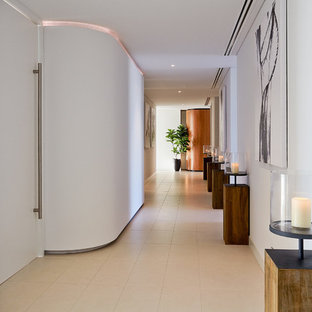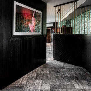 This image shows the entry hall, under stairs wine cellar and a room for relaxing. Our Client is Mongolian and this room was put together to represent a traditional Mongolian Yurt and a space for our Client to display personal items from her heritage.