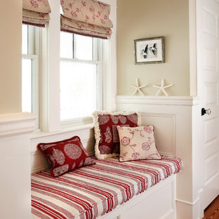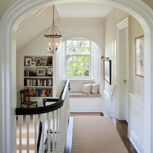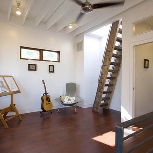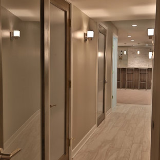 Finished basement with built-ins, cable wire stairs with built-in drawers.