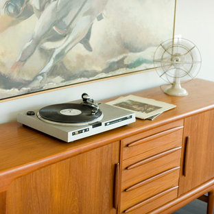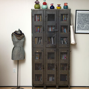 This hallway was part of a larger remodel of an attic space which included the hall, master bedroom, bathroom and nursery. Painted a brilliant white and borrowing light from the frosted, glass inset nursery and bedroom doors, this light hardwood space is lined on one side with custom, built-in storage. Making the most of the sloping eave space and pony wall, there is room for stacking, hanging and multiple drawer depths, very versatile storage. The cut-out pulls and toe-kick registers keep the floor and walkway clear of any extrusions. The hall acts as an extension of the bedrooms, with the narrow bench providing a resting place while getting ready in the morning.