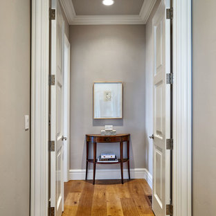 You can't help but suspect a luxurious master bedroom retreat is beyond this formal entry hallway. No detail is missed in the trim and molding, even for this small space.
