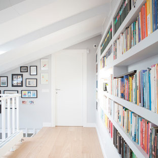 In una casa piccola con spazi residuali è possibile realizzare una libreria aerea unica e raffinata che non prende spazio e caratterizza l'ambiente.