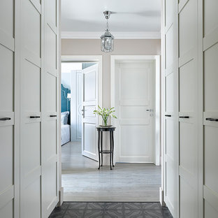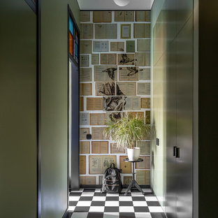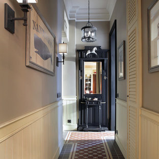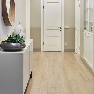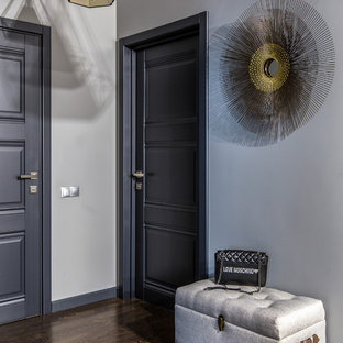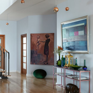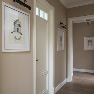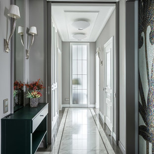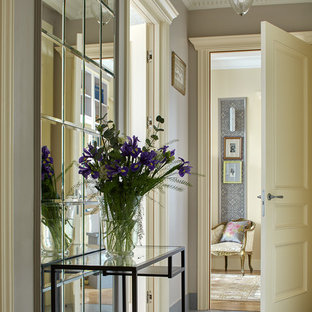 Вид из гостиной на холл. Картины художницы М. Уолтер стали для дизайнера источником вдохновения. Пуф Baleri Italia. Консоль по эскизам К. Мезенцевой. Носорог Andrew Martin.