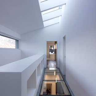 Diese Schiebetüre im Treppenhaus ist eine elegant moderne Lösung zum Schutz vor eindringender Kälte und Zugluft. Zusätzlich verbindet diese Schiebetürlösung harmonisch das Treppenhaus und den Wohnbereich.