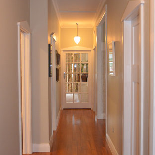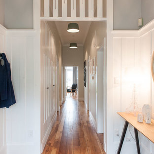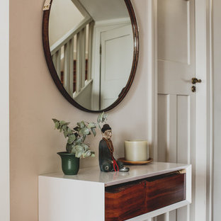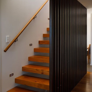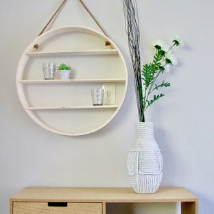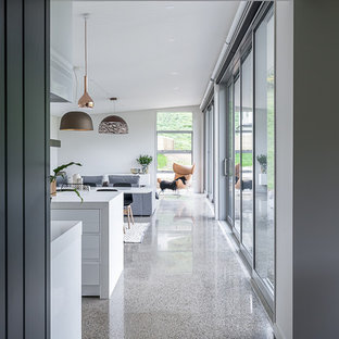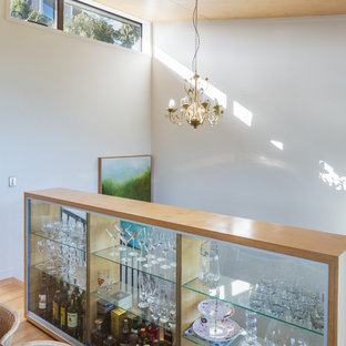 A glass shelf elegantly divides the kitchen & dining space from the stairwell.