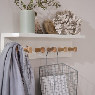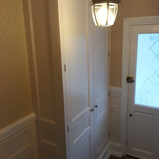 Bespoke panelling to hallway, hand painted with cupboard for coats/ shoes/ stoarge.