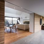 Snippet of view. Pallet and texture appeals - timber, black, white - dispersed light