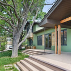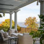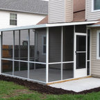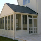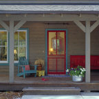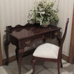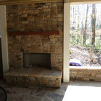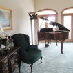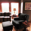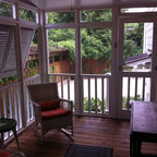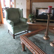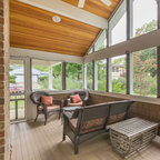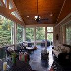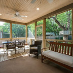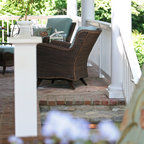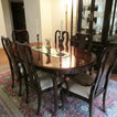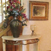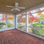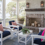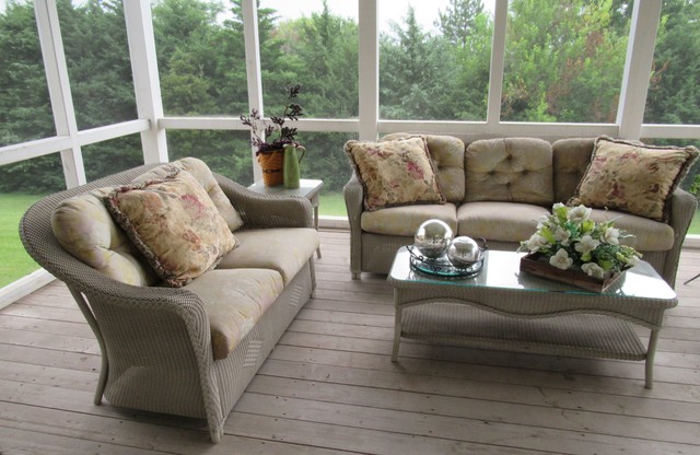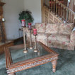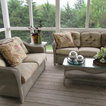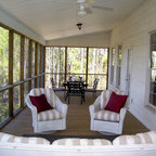 The large screened porch, off the formal living room, had the furniture arranged to face the view. To invite home buyers into the space, we faced the seating toward the interior of the home. We added the extra pillows from the living room to freshen the upholstered pieces, and added colorful flowers and accessories. One can imagine peaceful evenings spent with friends sharing wine and conversation.