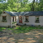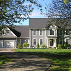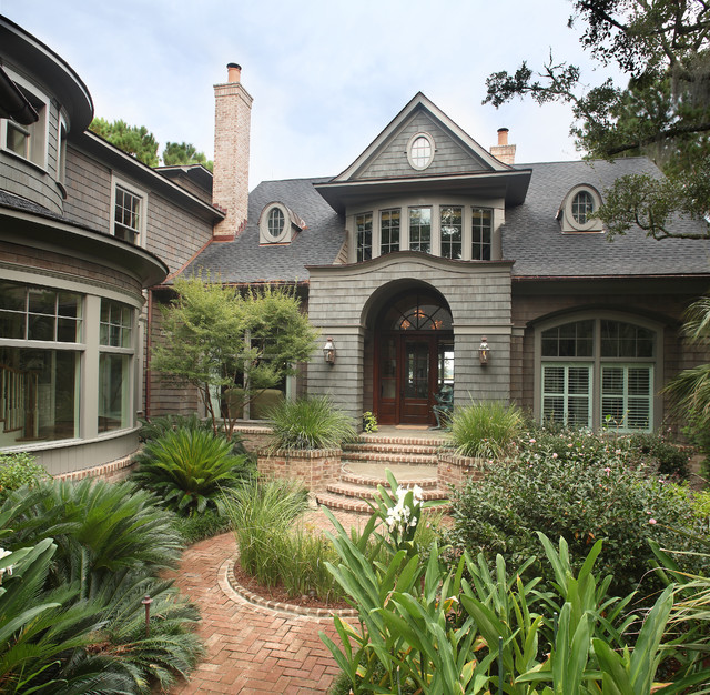 Love the cure of the two side windows. Love the 5 tall windows on the 2nd level. love the two round windows. Love the brick walkway.