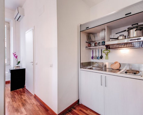 Credenza in cartongesso , rivestita con microcemento e decorata con effetto cemento.