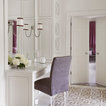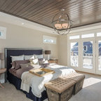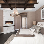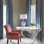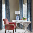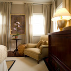 Walls are Sherwin Williams Temperate Taupe, Trim is Sherwin Williams Alabaster, Chandelier is Currey & Company, Drapery fabric is ID Collection.