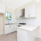 The Gourmet Kitchen will impress with Penny Round Mother of Pearl tiles for the splashback, Caesarstone White Attica benchtops and Laminex Burnished Wood cupboards to really bring home that contemporary styling.