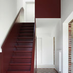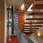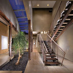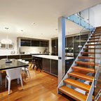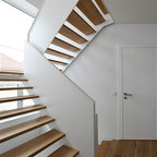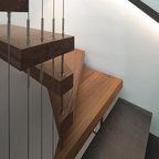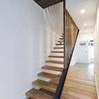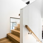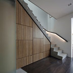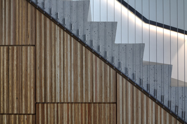 Off form concrete stairs. Vertical SS balustrade