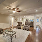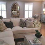 LOVE everything about this room, except skinny glass coffee table. This is one of my favorite houses