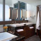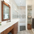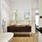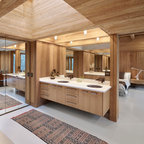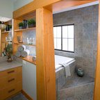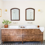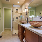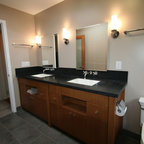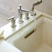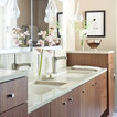 consider having taller cabinets on either side of sinks to add storage. Would this still leave enough room between sinks?