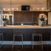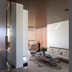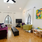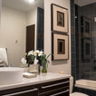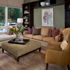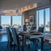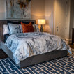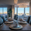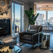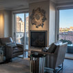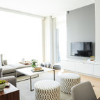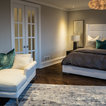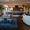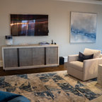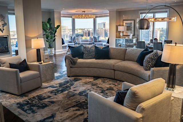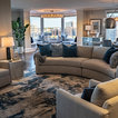 This curved sectional allows for a comfortable hosting space, centered around the television. One will find additional seating in the two swivel chairs located on either side of the marble side tables. Whether you're reading, watching television, or taking a mid-day nap, this space will be one you find yourself in often!