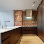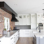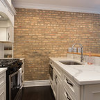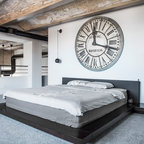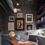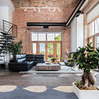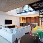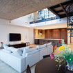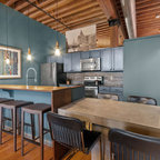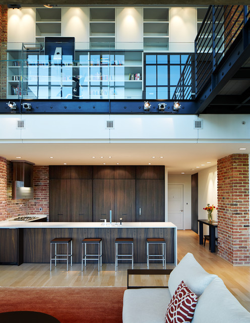 Brick accent walls - exposed industrial beams