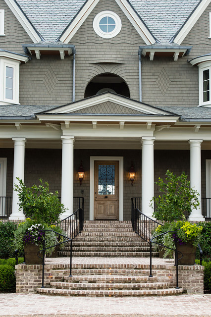 Shingle Style Front Porch with Tuscan Columns and Slate Roof