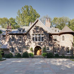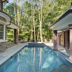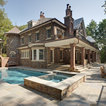 Stone Country Estate Rear Courtyard with Covered Porch and Pool