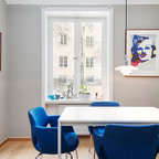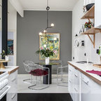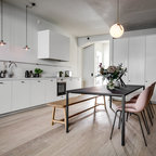 cocina de ensueño, armarios hasta el techo y un color increible, me gusta el relieve de las puertas