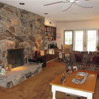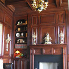 Mantel longer than fireplace and small fireplace surround