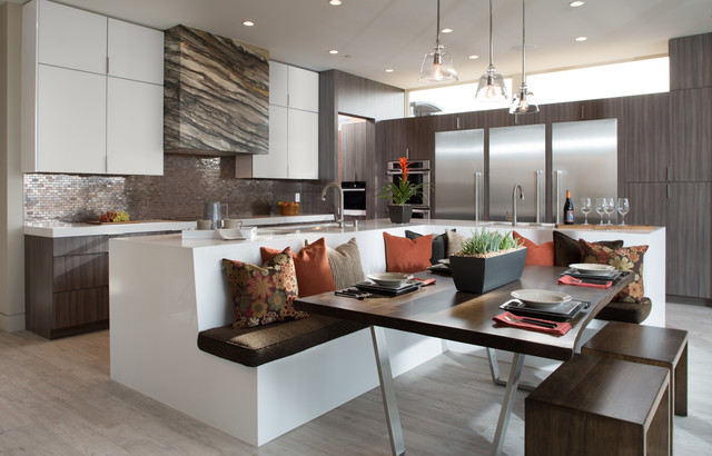 do we like the idea of a high/low island that integrates dining table with it? (Definitely with considering... this much better than what they did in 15A