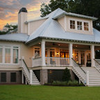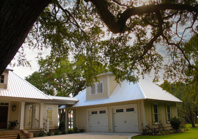 Rick Twilley of Twilley Builders built his personal home to be a shining example of "Home, Sweet Home." Looking over Dog River in Mobile, AL, this beautiful 4,000 square foot cottage sits under a canopy of ancient oaks and Spanish moss, luring you in with the inviting walk and warm porch lights. Rick's attention to detail is noticeable in every aspect of the home - from the beautiful trim and moulding to the elegant columns and woodwork. Designed by Bob Chatham, this home takes advantage of the beautiful water views with the open living, dining room and kitchen and large back porch, and is situated to fit right into it's idyllic surroundings. Open rafter tails and large overhangs top off the look of the exterior, while Rick and his wife Karen contribute their excellent taste and style when choosing the beautiful finishes, fixtures, materials, and warm, natural hues that truly make the house a home.