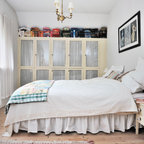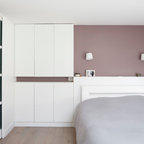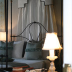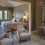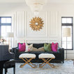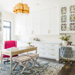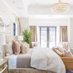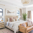 color scheme; gray-white-blush; gold accents and fixtures (curtain rods)