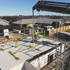 Supply and install service of a working platform for the erection of Trusses or midfloor framing. The underside of the work platform is a pre-finished ceiling lining ready for plaster stopping at the joins.